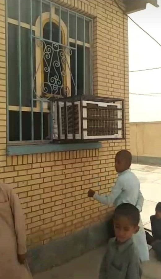 Kühleinheiten drauβen vor dem Fenster angeschafft. So heizen sich die Klassenräume nicht mehr auf.